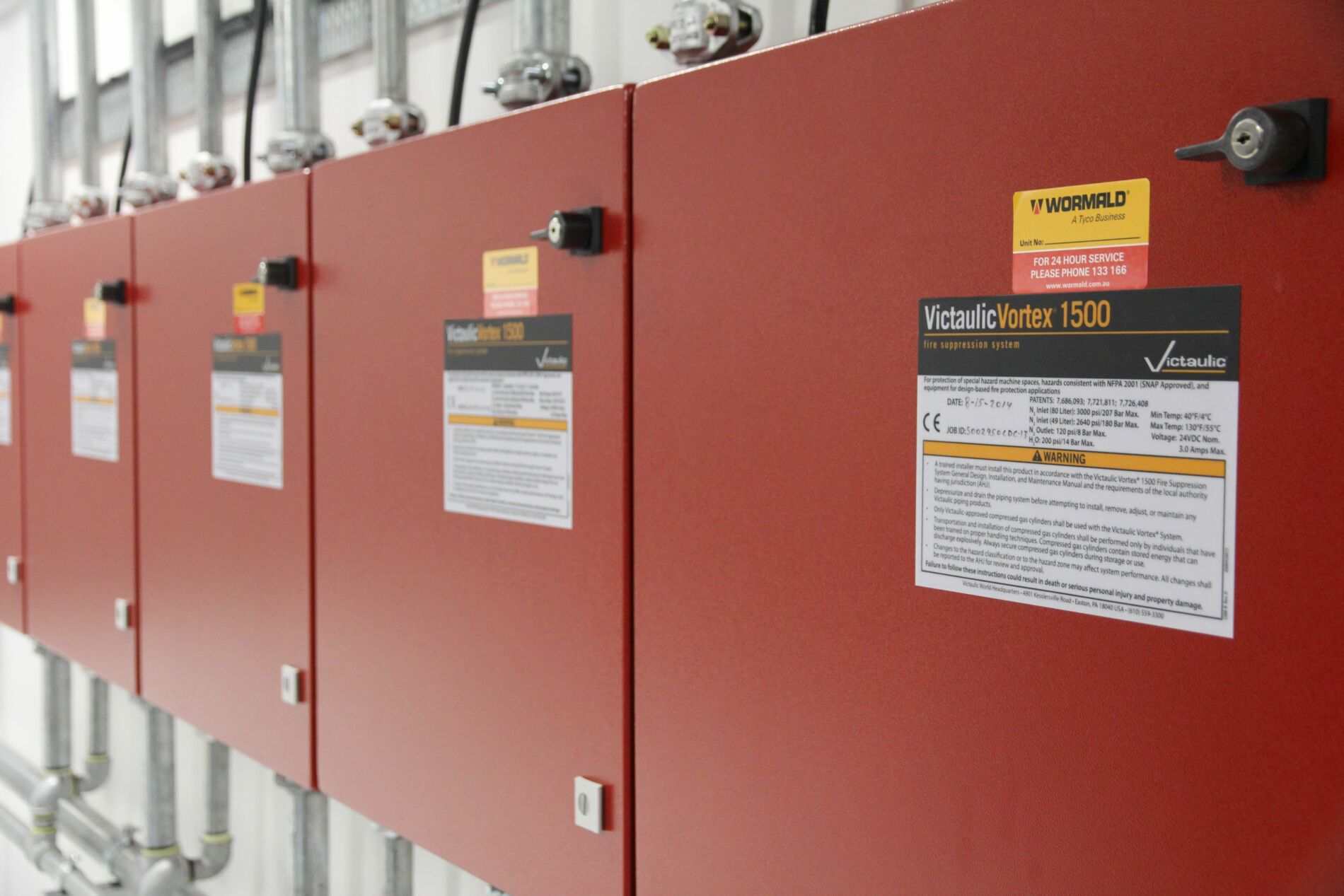 Bei Victaulic Vortex beträgt die durchschnittliche Tröpfchengröße weniger als 10 μ und die geringe Wassermenge, die an den einzelnen Auswürfen freigesetzt wird — nur 3,78 Liter pro Minute — bedeutet, dass Bereiche kaum benetzt werden. Herkömmliche Sprinkler setzen für gewöhnlich mehr als 94,6 Liter Wasser pro Minute pro Sprinkler frei, d.h. 96 % mehr als das Victaulic Vortex-System. Darüber hinaus setzen Hochdruck-Wassernebelsysteme ca. 30,3 Liter Wasser pro Düse pro Minute frei, d.h. 88 % mehr als das Victaulic Vortex-System. Anders als bei anderen Systemen mit einer Kombination von Löschmitteln verwendet das Vortex Hybrid-System von Victaulic sowohl Stickstoff als auch Wasser als sich gegenseitig ergänzende Löschmittel. Bei kleineren Bränden ist der Stickstoff das hauptsächliche Löschmittel, er reduziert den Sauerstoffgehalt in dem Bereich so, dass noch geatmet, aber eine Verbrennung nicht aufrechterhalten werden kann.